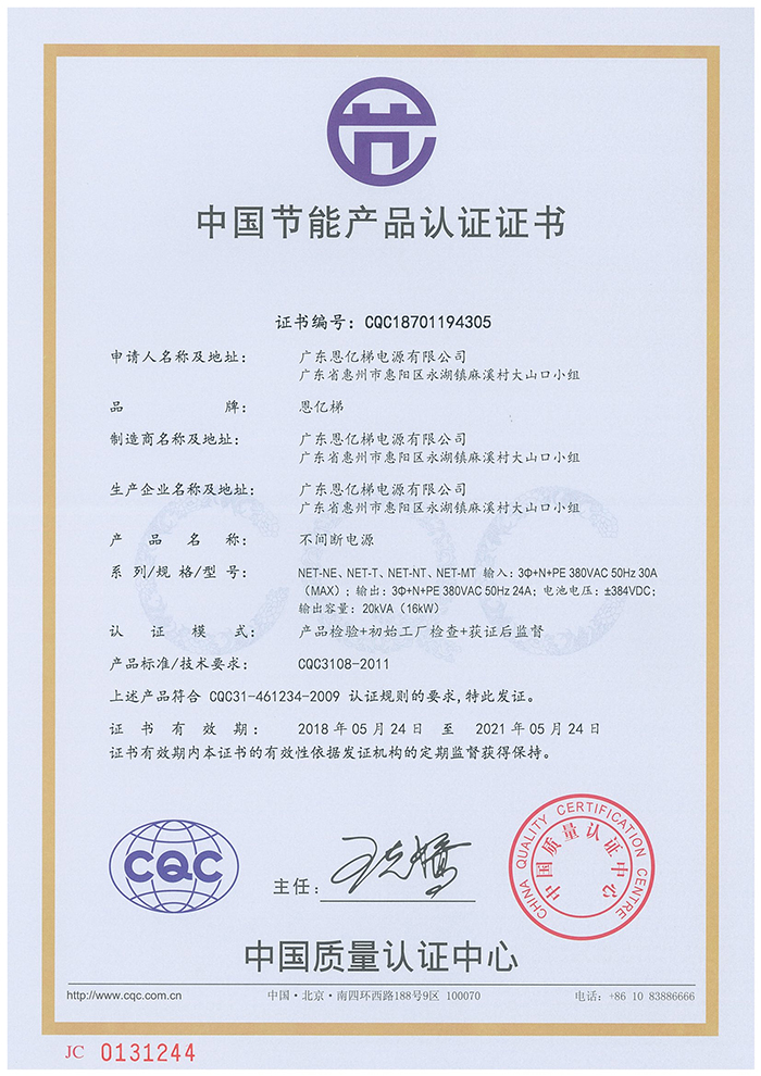 中國節能產品認證證書